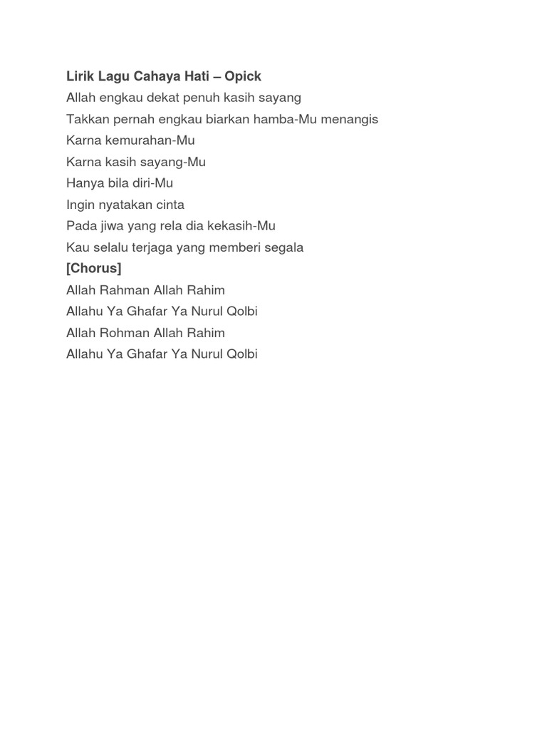 Cahaya Hati Lyrics By Opick Allah Engkau Dekat Penuh